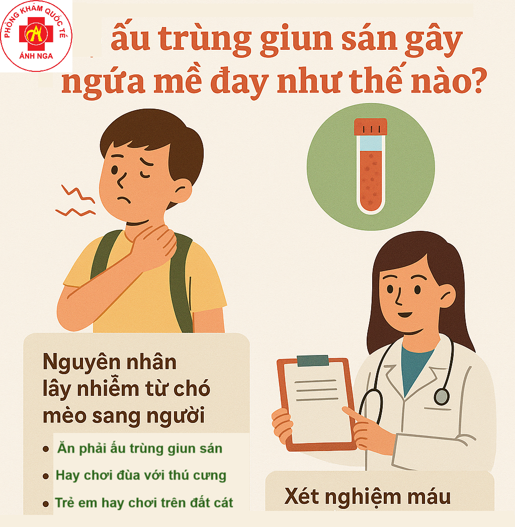 Ấu trùng giun sán, đặc biệt từ chó mèo, là nguyên nhân tiềm ẩn gây ngứa da, mề đay kéo dài ở lứa tuổi học sinh. Việc tầm soát bằng xét nghiệm máu, điều trị đúng phác đồ và phòng ngừa qua vệ sinh cá nhân và tẩy giun định kỳ là vô cùng quan trọng.