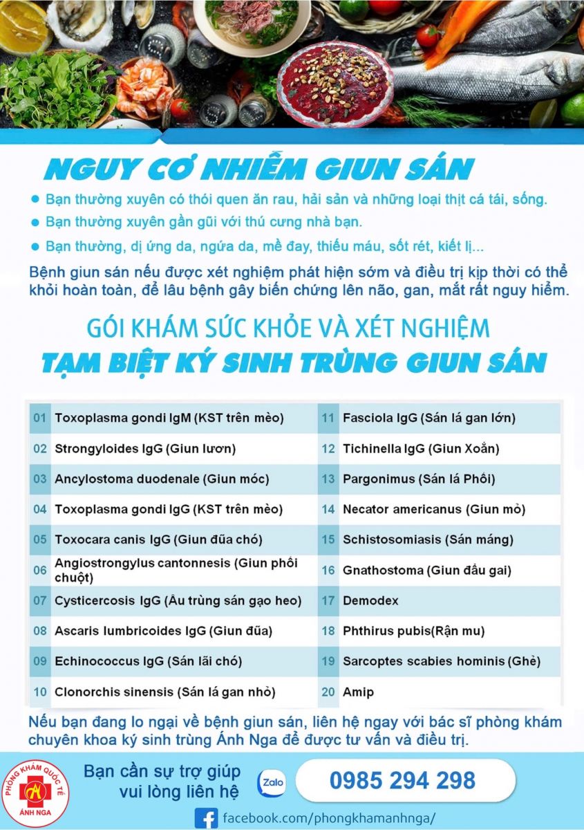 - Xét nghiệm máu tìm kháng thể giun sán.