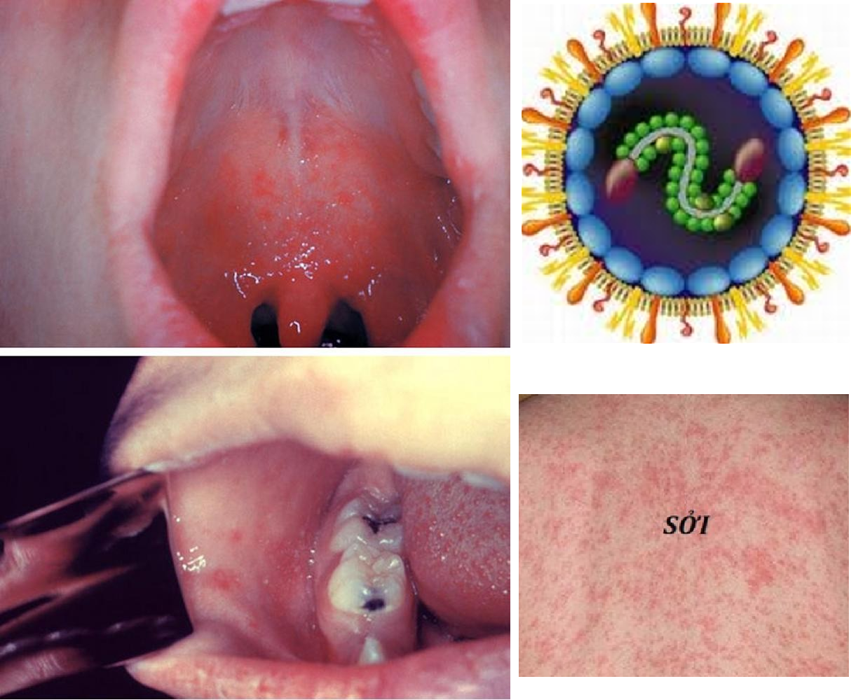 Đốm Koplik xuất hiện trong vòm họng ro virut gây nên, sau đó toàn thân phát ban nổi mẩn đỏ