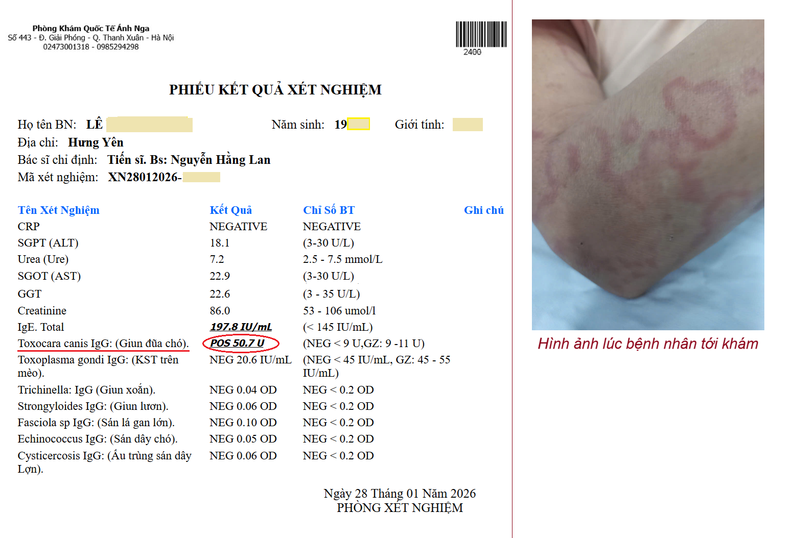 Hình ảnh: Kết quả xét nghiệm của một bệnh nhân dương tính sán chó Toxocara, bệnh nhân có triệu chứng ngứa dạng vòng lan rộng