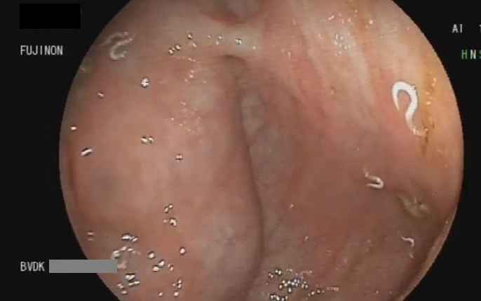 Hình ảnh: Soi thấy giun kim ở hậu môn một bệnh nhân nhi 10 tuổi