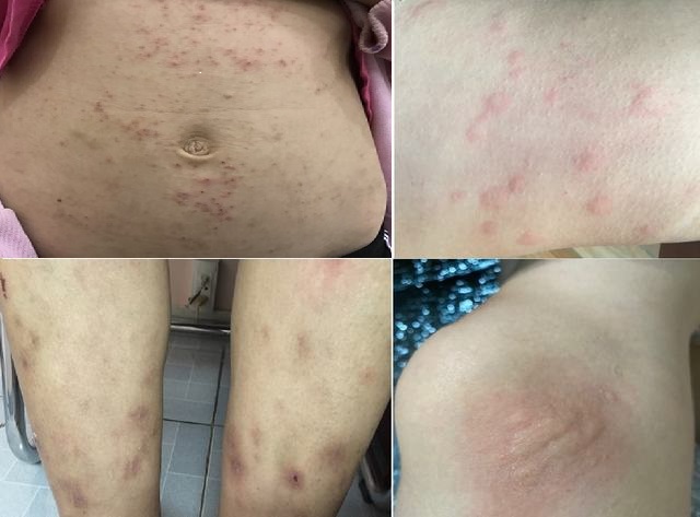 Hình ảnh da bị nổi sẩn và ngứa ở bệnh nhân xét nghiệm máu nhiễu ấu trùng giun đũa chó Toxocara
