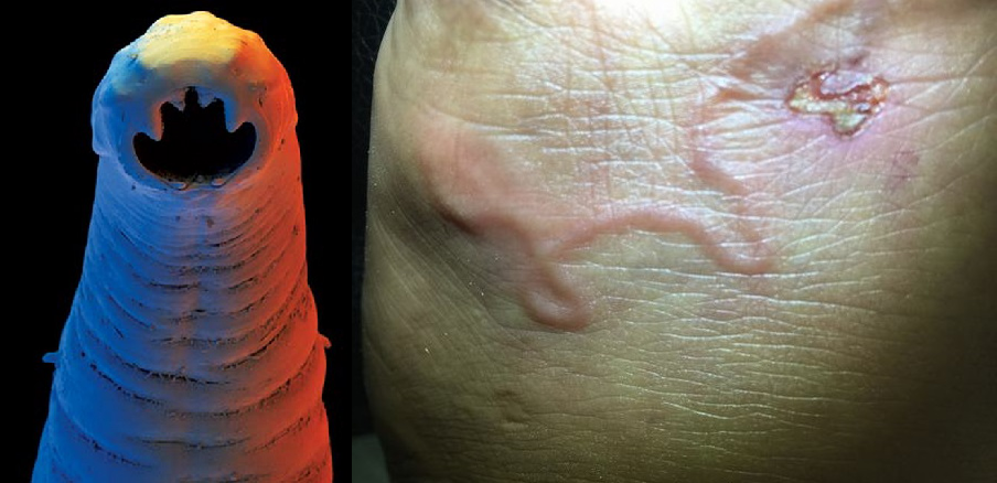 Ấu trùng giun sống trong đất ẩm, có thể xuyên qua da bàn chân, kẽ ngón chân khi: