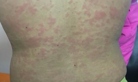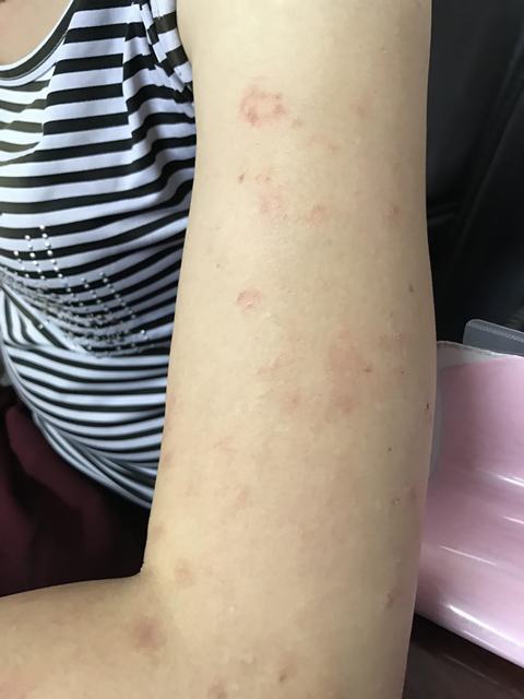 Mẩn ngứa da ở cánh, cẳng tay bệnh nhân nữ 35 tuổi nhiễm ấu trùng sán chó toxocara